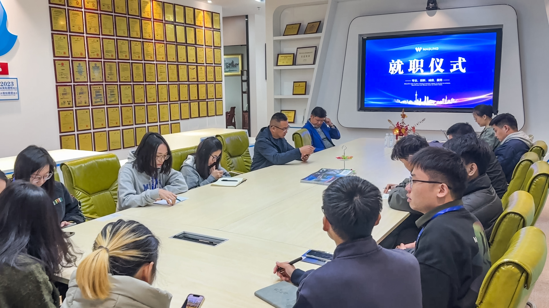2.晟總因接待客戶導致暫時缺席就職儀式,畢竟客戶的滿意才是銷售的立身之本,相信他一定也是深感責任重大,但同時也充滿信心。相信通過團隊的協作,能夠推動公司在國際市場的進一步發展,讓我們一起開啟美松智能的新篇章!