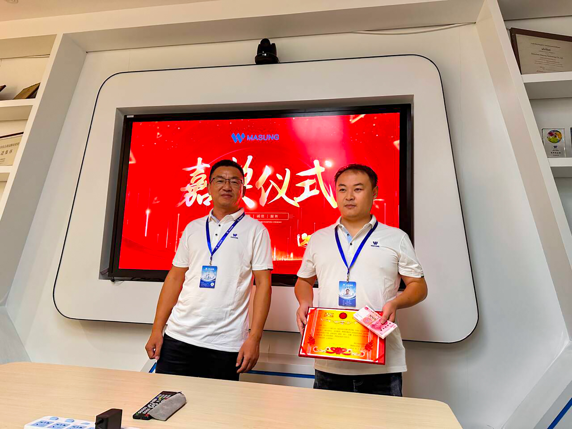 最后,董事長(zhǎng)陳斌先生也作了發(fā)言并寄予大家厚望。他說(shuō):在充滿(mǎn)競(jìng)爭(zhēng)與挑戰(zhàn)的商業(yè)世界里,唯有不斷突破自我、勇于創(chuàng)新,才能掌握未來(lái)的主動(dòng)權(quán)。在這段時(shí)間里看到,鄧敏表現(xiàn)出極強(qiáng)的積極性和責(zé)任感。他不斷學(xué)習(xí)行業(yè)知識(shí)、市場(chǎng)動(dòng)態(tài),提升自身素質(zhì),用充滿(mǎn)激情的工作態(tài)度影響著團(tuán)隊(duì)的每一位成員。面對(duì)困難和挫折,他堅(jiān)持不懈,迎難而上,用刻苦勤懇的精神感染我們身邊的每一個(gè)人。正是這份不畏艱難、勇于創(chuàng)新的精神,為他贏得了客戶(hù)的信任,也為公司贏得了實(shí)實(shí)在在的業(yè)績(jī)。希望全體銷(xiāo)售人以他為榜樣,在工作中保持學(xué)習(xí)熱情,勇于迎接挑戰(zhàn),加大拓展新行業(yè)新領(lǐng)域,共同推動(dòng)公司的發(fā)展,也能創(chuàng)造更高的個(gè)人收益!陳董還表示,希望所有銷(xiāo)售人走出去,代表美松代表美松能量,讓美松品牌masung、美松價(jià)值、美松平臺(tái)擁有的硬件+軟件+耗材服務(wù)、美松技術(shù)研發(fā)專(zhuān)精能力、美松打印機(jī)掃描儀產(chǎn)品、美松定位不僅小票據(jù)打印掃描外還有熱轉(zhuǎn)印大打印、美松規(guī)模實(shí)力等附加價(jià)值,傳遞出去,能為客戶(hù)創(chuàng)造更多的價(jià)值,與客戶(hù)共同發(fā)展。