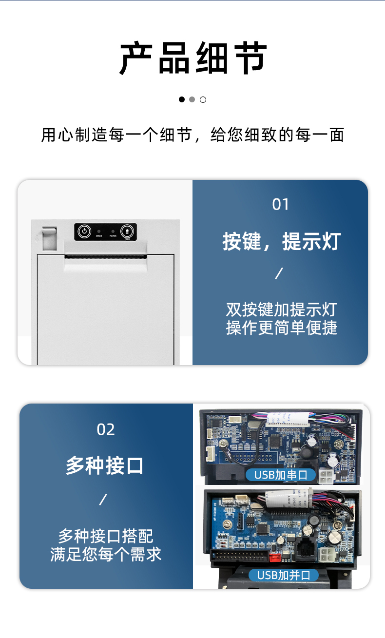 微型打印機介紹:美松根據微型打印機市場需求,自主研發一款58mm微型熱敏打印機,這款微型打印機面框兼容80mm打印機尺寸,帶有錢箱接口,收銀系統兼容性好,紙倉空間較大,可以裝60mm直徑紙卷,外觀簡潔大方,耐用不易損壞,適應多種場景,滿足微型打印機品牌不同需求。型號為MS-FPT206微型打印機是一款嵌入式微型打印機,不同于POS打印機可以隨身攜帶,嵌入式微型打印機只需要簡單安裝就能實現打印功能的打印模塊,MS-FPT206可嵌入在不同的終端設備,例如加油站、餐飲收銀機等,微型熱敏打印機是零售、餐飲、娛樂、醫療、物流等行業的自助終端設備理想打印伙伴。