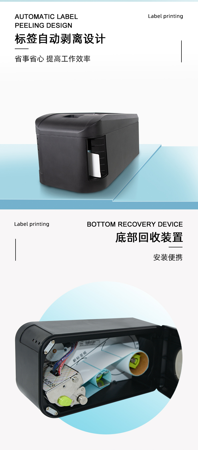 標簽打印一體機 45°角斜出紙 回收底紙裝置 為零售新零售等行業提供解決方案.