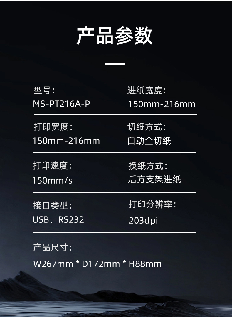 一款全新大幅面熱敏打印機,打印寬度150mm-216mm可調節。