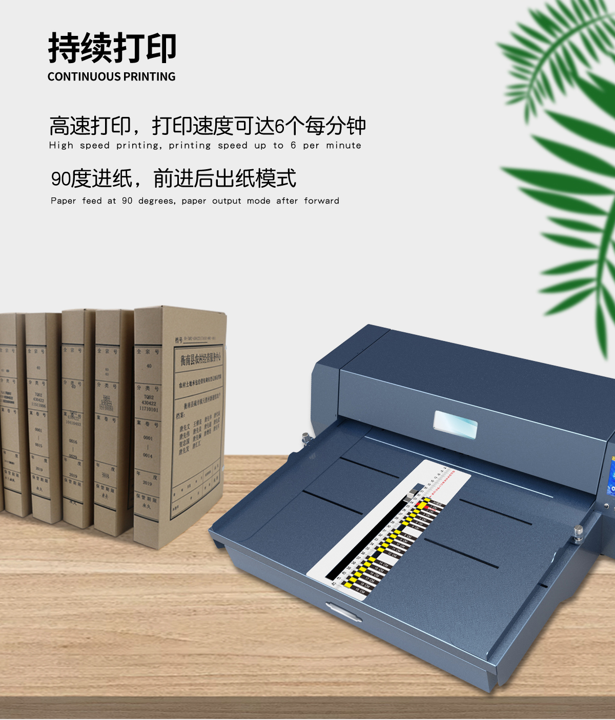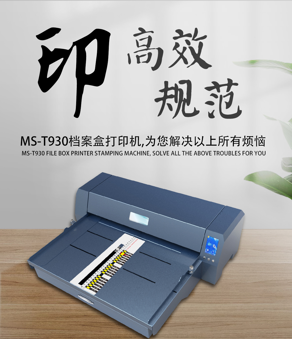 美松MS-T930檔案盒熱轉(zhuǎn)印打印機(jī),熱轉(zhuǎn)印設(shè)備,熱轉(zhuǎn)印機(jī)器針對(duì)已印刷的檔案盒封面進(jìn)行二次加印,或單張空白版面牛皮紙,無(wú)酸紙,證件內(nèi)頁(yè)進(jìn)行打印的設(shè)備.采用碳帶熱轉(zhuǎn)印方式打印,文字清晰耐刮永不褪色.電腦排版完即可通過(guò)USB打印無(wú)需制版,A3+標(biāo)準(zhǔn)檔案盒幅面,方便快捷成本低廉,機(jī)構(gòu)可靠性高,操作,維護(hù)簡(jiǎn)單.適用于公檢法,檔案局,審批局,醫(yī)療診所,教育機(jī)構(gòu),煙草,房產(chǎn)管理,電力,鐵路等行業(yè)。