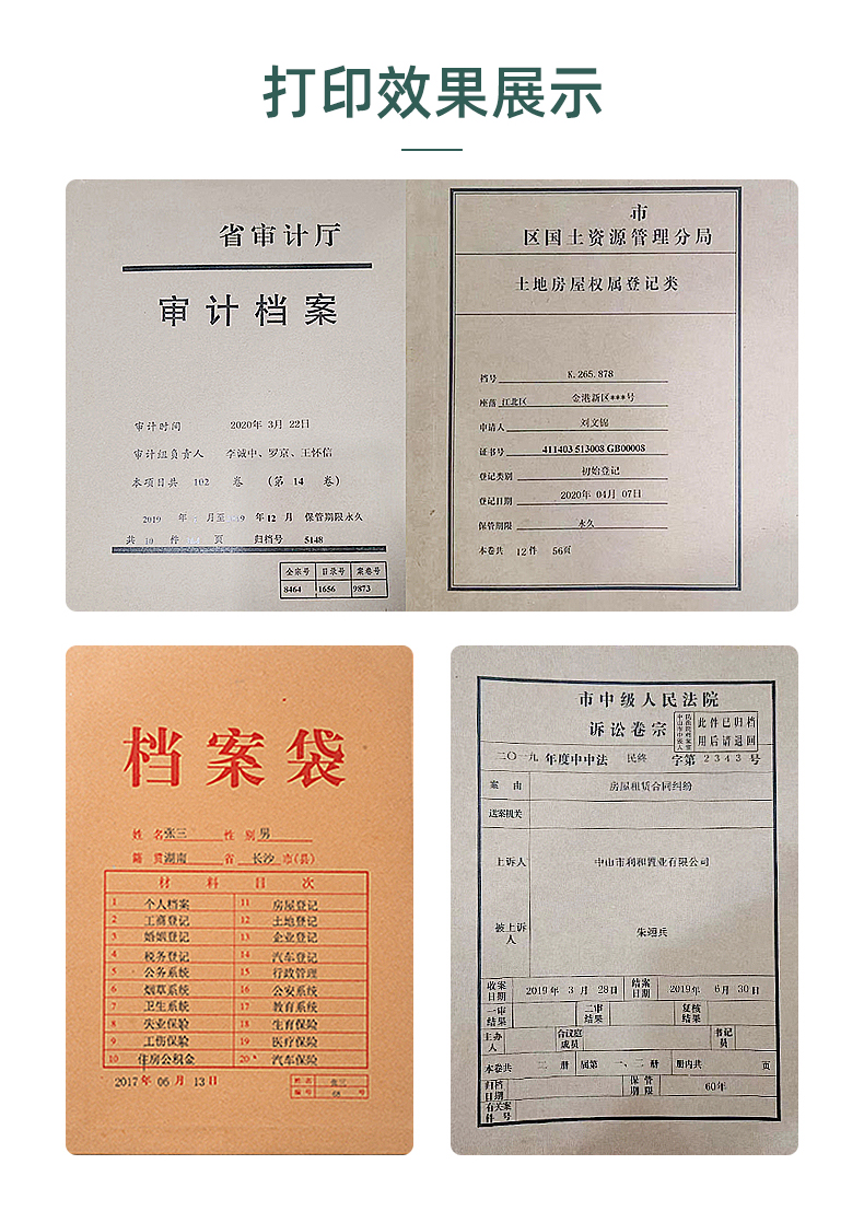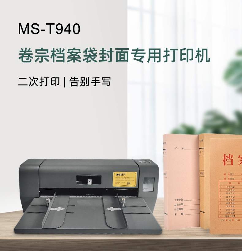 美松MS-T940熱轉印檔案袋封面打印機,為牛皮紙,不動產等證件內頁,無酸紙檔案盒、檔案袋特種行業(yè)提供智能打印方案,且永久保存,適用于檔案館、公檢法司部門、教育事業(yè)單位、工商稅務局、金融機構等行業(yè)的檔案管理的工作,實現高效規(guī)范的科學檔案管理。