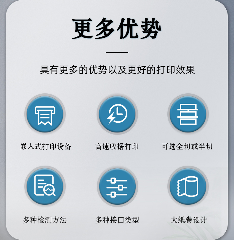 MS-N60打印的尺寸為48mm;MS-M60打印的尺寸為56mm,帶防堵防拽紙功能。