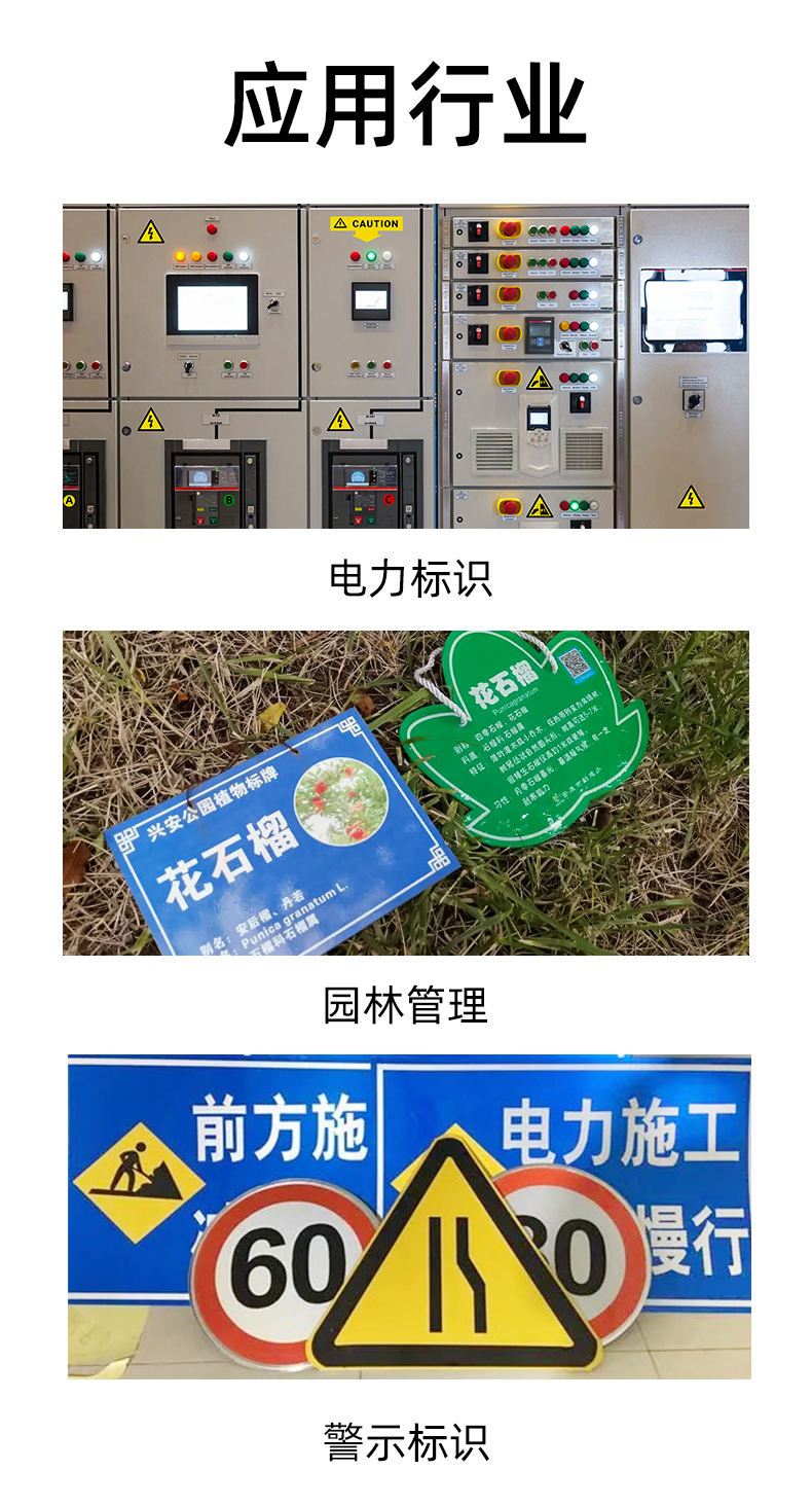 應用于多種行業,比如電力標識標牌,施工危險警示標識標牌,園林管理標牌,樹木介紹標牌,道路標識標牌